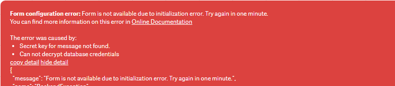 Initialization error while testing existing Forms Instance ID created with General SQL.